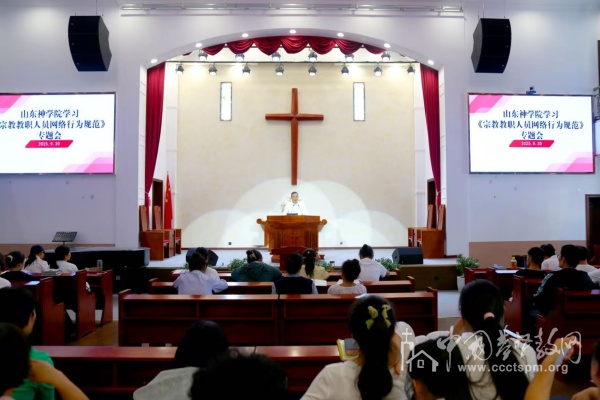 2025年9月30日上午,山东神学院举行《宗教教职人员网络行为规范》(以下简称《行为规范》)专题学习会。山东神学院院务班子成员以及全体师生参加学习。学习会由山东神学院教务长黄凤想牧师主持。